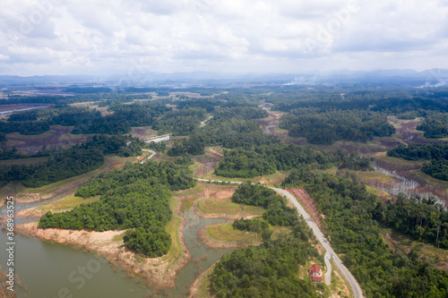 Aerial view of nature showing the tropical forest in Laos.