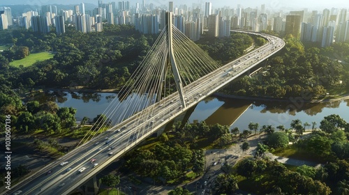Aerial view of the iconic Estaiada bridge in São Paulo, Brazil.
