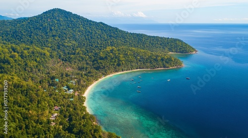 Aerial view of the lush forests and beaches of Koh Tarutao.