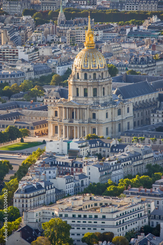 Aerial view of the Paris with church of Saint Louis and museum Les invalides