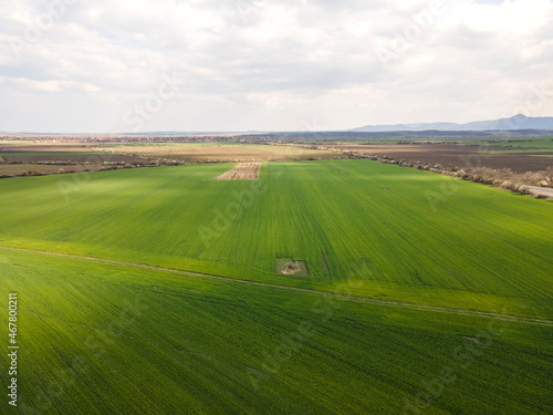 Aerial view of Upper Thracian Plain near town of Parvomay, Bulgaria