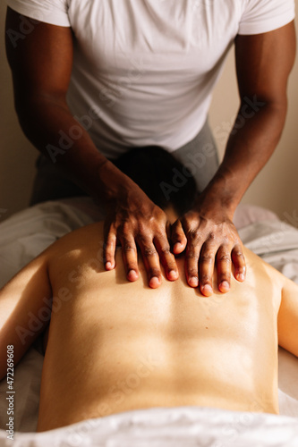 African american professional therapist in a shoulders massage