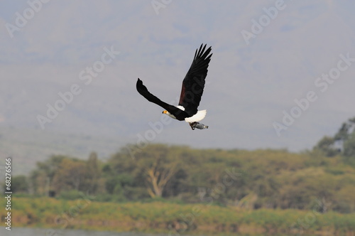African fish eagle in fly at Naivasha Lake, Kenya