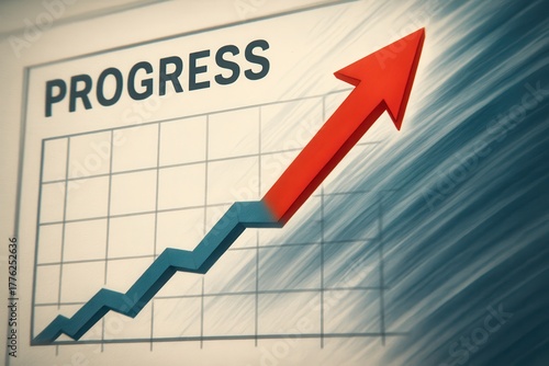 Agent Workflow Automation concept. Illustration of an upward-trending progress chart with a red arrow indicating growth and improvement.
