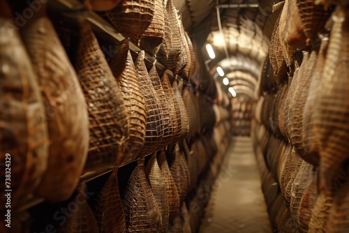 ageing, traditional, cellar, hanging, cured, controlled, environment, process, meat, preservation, spanish, delicacy, epicure, food, culinary, texture, favor, dry, curing, pork meat, quality, artisan, craftsmanship, heritage, culture, production, storage, wooden, beam, temperature, humidity, gastronomy, specialty, mature, vintage, aroma, taste, luxury, authentic