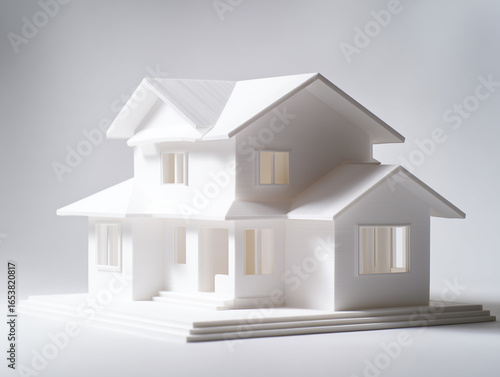 白い立体模型で表現された住宅のモックアップ「生成AI」