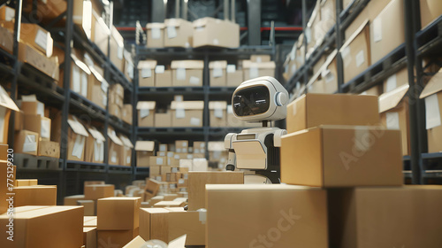 AI assistant managing inventory levels of cardboard boxes in a fully automated warehouse powered