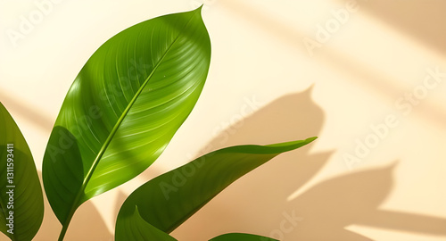 AI generated organic abstract background with soft green tropical leaves casting elegant shadows