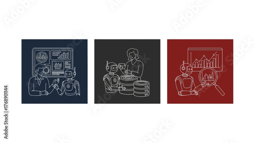 artificial intelligence, automation, robotic, technology, innovation, business, science, ai, robot, human, datum, database, graph, machine, learning, vector, illustration, clip art, icon, graphic, art, digital artwork, cartoon, tech, algorithm