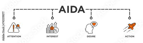 AIDA banner web icon vector illustration concept for attention interest desire action with icon of promotion, target, vision, store, ecommerce, and buying