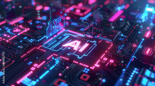 AI-powered technology helps develop new technologies in web design, robotics, and business, showcasing its advanced nature. Desing concept with "AI" lettering