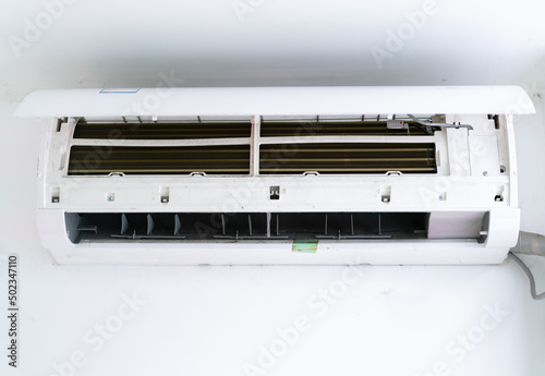 air, conditioner, dust, open, maintenance, clean, home, service, indoor, house, wall, white