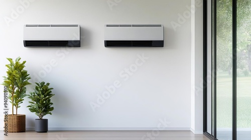 Air conditioner with a sleek, black finish in a modern home, stylish cooling, cooling technology