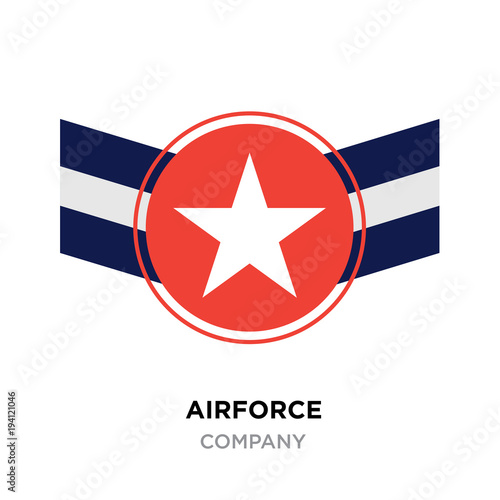 Airforce logo, Military armed forces badges and labels vector icon with red blue white styled star