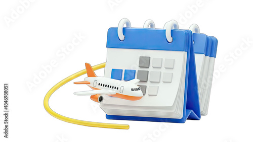 aeroplane, calendar, travel, planning, concept, air travel, flight, orange, blue, white, schedule, date, vacation, holiday, trip, journey, aviation, aircraft, booking, time, illustration, three-dimensional, render, isolated, business, paper, destination, worldwide, tour tourism, departure, arrival, agenda, event