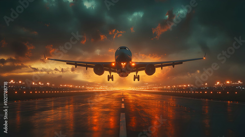 destination, dusk, arrival, night, aeroplane, landing, runway, evening, departure, aerodrome, twilight, aviation, sky, cloud, boeing, aircraft, air travel, light, airbus, airliner, transportation, journey, air traffic, flight, sunset, travel