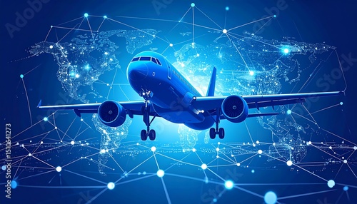 aeroplane, aircraft, travel, flight, world map, global, aviation, transportation, network, communication, connection, technology, international, journey, business, logistic, cargo, air travel, passenger, worldwide, economy, destination, plan, route, vector, illustration, digital, future, concept, design, background, blue, abstract, graphic, modern, infographic, datum, information, connectivity, globe, navigation, traveling, transport, jet, landing, departure, aerial