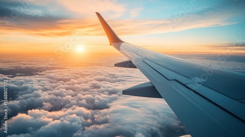 aeroplane, wing, cloud, sunset, sky, flight, travel, high, view, horizon, sunrise, aerial, perspective, gold, orange, colourful, huge, scenic, journey, cloudscape, trip, sunlight, nature, atmospheric, beauty, dramatic, light, fluffy, cumulus, altocumulus, stratus, wingspan, plane, viewpoint, bright, soft, wide, open, cloud, expansive, air, skyline, top, elevated