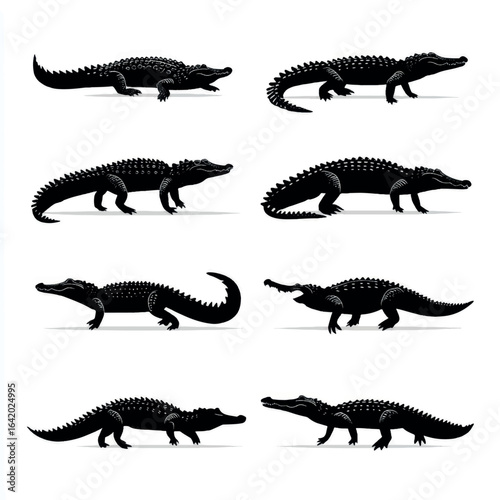 silhouette, alligator, predator, reptile, isolated, teeth, creature, crocodile, jaw, graphic, powerful, carnivore, tail, danger, leg, white, background, river, monster, mouth, scale, dangerous, hunter, strong, aquatic, black-and-white, crawling, illustration, jungle, set, snout, swimming, clip art, florida, group, legend, mascot, mysterious, skin, aggressive, amphibian, and, beast, cut-out, eye, ferocious, fierce, louisiana, majestic