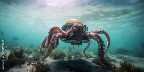 amazing, photo, cyborg, octopus, ocean, sea, futuristic, robot, lens, mechanical, contraption, marin, underwater, tentacle, technology, metal, exoskeleton, cyber, high technology, strange, oceanic, hybrid, cyberspace, arm