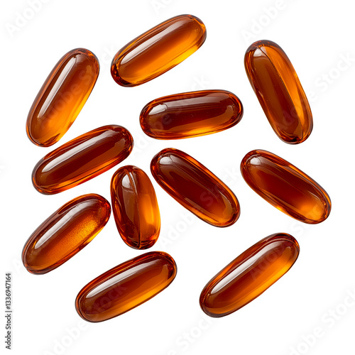 Amber capsules on a transparent background health supplements isolated view