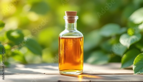 bottle, glasses, amber, liquid, oil, essential, nature, outdoors, green, leaf, sunlight, summer, wood, table, cork, natural, healthy, remedy, wellness, organic, herbal, plant, extract, medicine, therapy, aroma, fragrance, scent, botanical, ingredient, product, beauty, care, relaxation, calmness, serenity, freshness, vibrant, bright, background, scene, image, photo