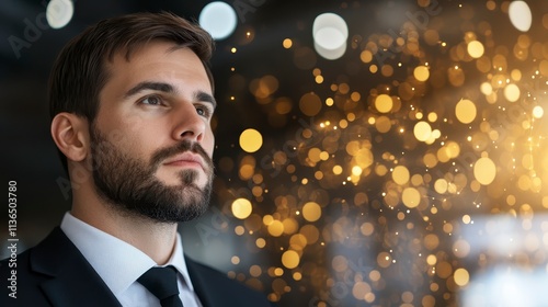 Ambitious Businessman Golden Lights Future Success