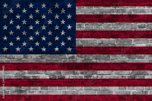 American flag over a grunge brick background. United States of America USA Independence Day 4th of July.