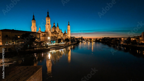 saragossa, basilica, sunset, reflections, majestic, iconic, twilight, golden hour, serenity, glow, city landscape, spain, landmark, architecture, skyline, waterfront, religious, symbol, calmness, silhouette, horizon, urban, cultural, heritage, tour tourism, beauty, scenic, romance, history, river bank, evening, dusk, faith, catholicism, tourist attraction, destination, travel, landscape, european, riverfront