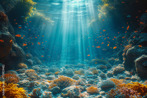 An AI interpretation of underwater life, creating a fantastical seascape that transcends physical boundaries. Concept of AI in exploring oceanic mysteries. Generative Ai.