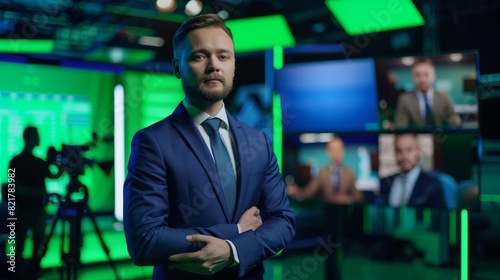 An anchor speaks on TV while reporting. It uses a picture-in-picture green screen. It shows side-by-side Chroma Key displays.