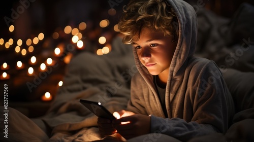 person, tablet, anonymous, light, bokeh, hood, robe, technology, touch screen, cosy, relaxation, evening, mystery, warmth, home, leisure, comfort, cyberspace, browsing, digital, device, user, screen, focused, concentration, solitude, connection, online, communication, modern, indoor, night time, glowing, informal, sitting, bed, electronic, contraption, entertainment, bedchamber, household