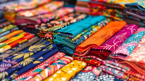 An array of colorful and vibrant fabric swatches are laid out on the table providing endless creative possibilities for the quilters to choose from.