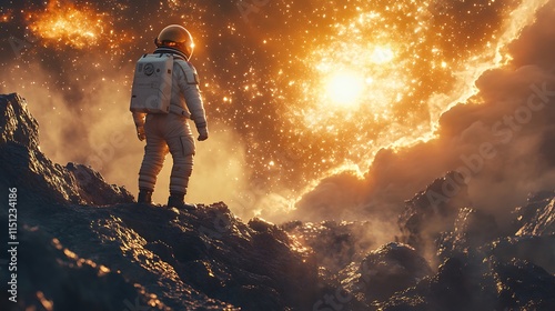 astronaut, asteroid, aglow, edge, star, shadow, highlight, dramatic, cinematic, lighting, epic, scale, detail, hd, high-coloured, cosmic, element, breathtaking, optical, celestial, nebula, stellar, radiant, atmospheric, captivating, planetary, vibrant, glow, interstellar, aethereal, surreal, majestic, visual