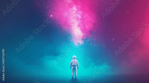astronaut, space, nebula, galaxy, star, night sky, cosmic, astronomy, science fiction, exploration, discovery, universe, wonder, mystery, dark, desolate, silhouette, vibrant, swirling, pink, purple, blue, black, contrast, awe