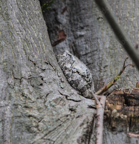An Eastern Gray Tree Frog Sleeping on a Tree