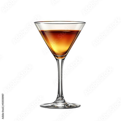 An elegant amber cocktail in a classic martini glass sparkling with warm on transparent background