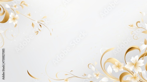 An elegant design with gold and white floral patterns and swirls on a light background, conveying luxury and sophistication, ideal for wedding invitations, elegant branding