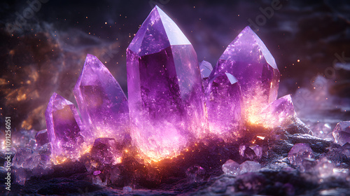 crystal, amethyst, purple, light, surrounded, quartz, twinkling, colours, magical, atmosphere, gaze, artistic, visualisation, enchanting