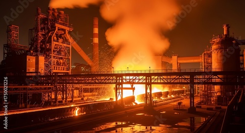 industry, plant, steel, night, flames, smoke, structure, industrial, factory, fire, orange, building, production, energy, power, metal, iron, heat, emission, pollution, environment, technology, machine, equipment, process, manufacturing, fuel, resource, site, area, zone, complex, construction, engineering, infrastructure, development, economy, job, men at work, labor, supply, demand, market, trade, export, import, global, warming, climate