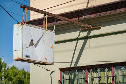 signs, vintage, shop, retro, faded, architecture, cracked, old, blue, rust-eaten, broken, cigarette, facades, building, sky, business, curtain, frame, metal, pole, rust, smoke, steel, structure, tree, wire, work