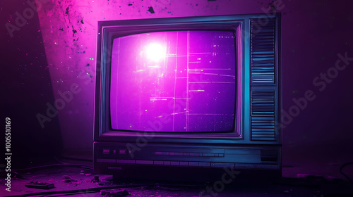 television, static, screen, pink, light, retro, vintage, old, antique, technology, media, digital, electronic, television, crt, broken, cracked, damaged, grunge, abandoned, forgotten, dusty, dark, room, interior, house, home, night, evening, glow, noise, signal, electricity, power, circuit, wire, neon, futuristic, concept, abstract, design, graphic, art, illustration
