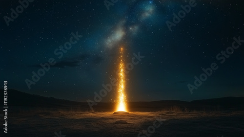 An open book with glowing pages and starlight streaming into the sky, against a dark celestial backdrop
