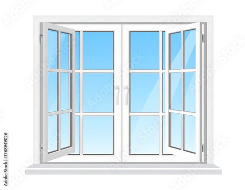 window, open, frame, glasses, sky, blue, bright, sunny, clean, home, house, indoor, outside, light, view, transparent, square, grid, pane, illustration