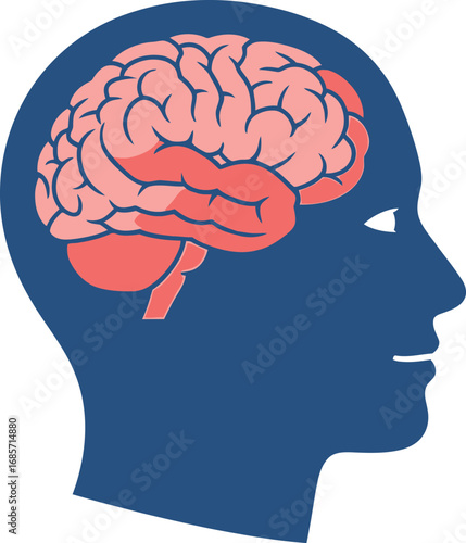 brain, head, mind, thought, intelligence, psychology, neurology, anatomy, science, medicals, health, human, silhouette, profile, thinking, cognition, memory, consciousness, cognition, intellect, neuroscience, biology, organ, cerebra, cerebellum, lobe, cortex, mental, learning, education, idea, creativity, wisdom, smart, genius, health care, medicine, graphic, illustration, vector, icon, symbol, concept, abstract, blue, pink, red