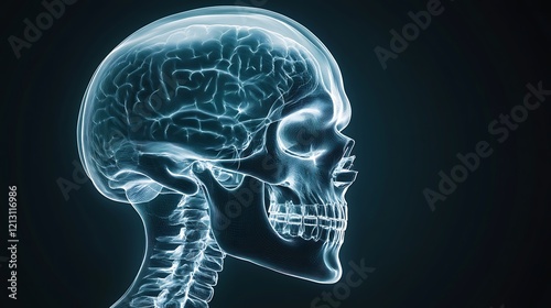 Anatomically accurate 3D rendering of a transparent human skull on a dark background
