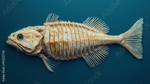 Ancient Aquatic Life Revived: Detailed Visualization of Prehistoric Fish Fossil with Copy Space, 8K Resolution