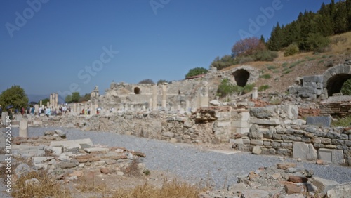 bokeh, building, blurred, defocused, soft, shallow, template, overlay, background, calm, virtual, production, plate, empty, ruin, historic, column, wall, stone, gravel, pavement, sidewalk, archway, hillside, tree, shrub, remain, facades, pathway, pebble, masonry, debris, pillar, step, dirt, grass, courtyard, horizon, sunlight, sky, distant, no people, colonnade, slope, marble