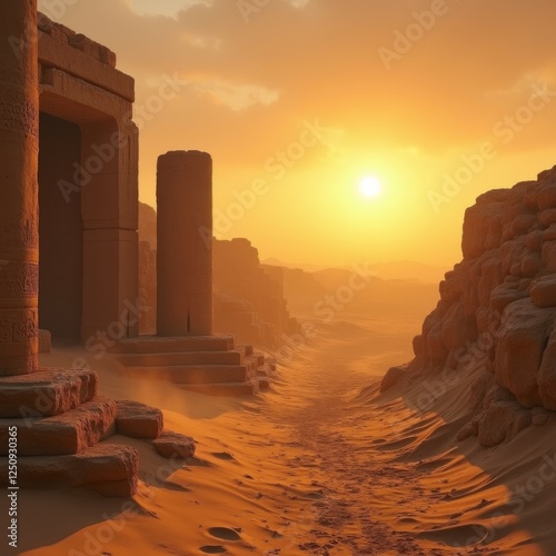 Ancient Desert Ruins at Sunset