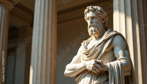 Ancient Greek marble statue of a Stoic philosopher in temple, stoicism, temple architecture